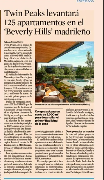 Noticia publicada en Expansión (26/07/2024), en la que se hacen eco del lanzamiento de 125 apartamentos en Valdemarín.
