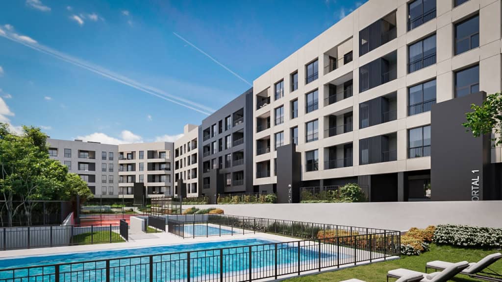 “La arquitectura del proyecto de la Menina da forma a la entrada de Alcobendas. Proyecto concebido para vivir en un entorno sostenible donde las viviendas fueron diseñadas con un concepto integral de espacio y funcionalidad.” – Nueva Milenia