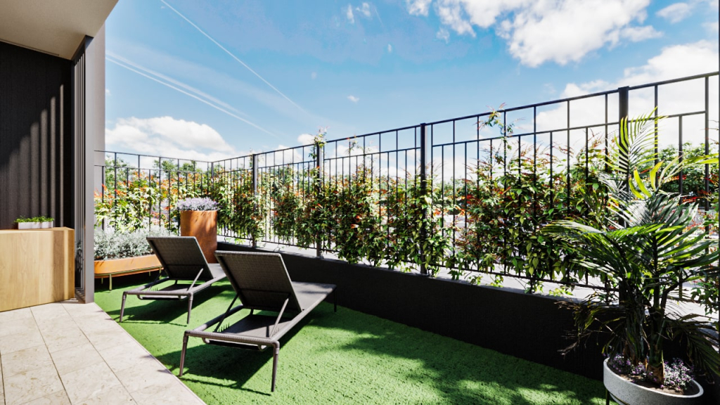 Promoción de 1 & 2 dormitorios y 1065 m2 de locales comerciales. Además, cuenta con unas amplias zonas comunes ajardinadas que incluyen piscinas y pista de pádel.